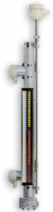 The NIVOFLIP is a bypass level indicator for pressurized vessels up to 5.5 m height containing liquids. The welded bypass chamber that is the body of the indicator and the tank form one pressurized system. Mounted on suitable connection flanges located on the side of the tank the liquid level in the bypass tube and the tank is equal. A float in the bypass tube incorporating a polarized magnet tracks the level of the liquid. Bi-coloured magnetic flaps mounted on the tube composing a bar are serving as visual indicators by changing their colour as the float passes. The rotated magnetic flaps represent the actual level. The lower 100 mm of the bottom section of the indicating bar hasdifferent colouring providing for an optical error signal in case the liquid level drops below the lower connection point of the instrument. NIVOFLIPcan be equipped with optional limit switches or with NIVELCO's NIVOTRACK M L-500high precision magnetostrictive level transmitter if level transmission is needed. All optional units are operated via magnetic coupling, there is no direct contact with the measured medium